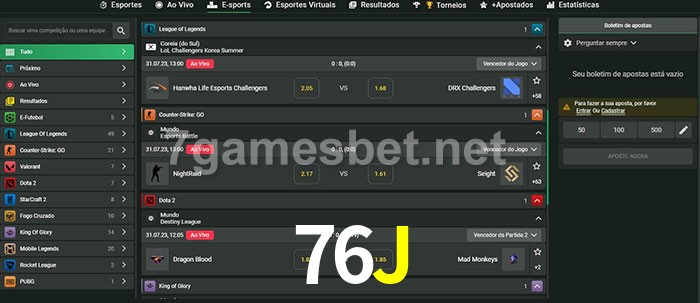 A aposta 76J oferece aos jogadores a experiência mais conveniente de apostas em eSports!